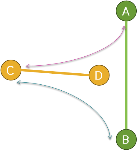 C,D를 기준으로 A와 B의 CCW의 부호가 각각 다를 때