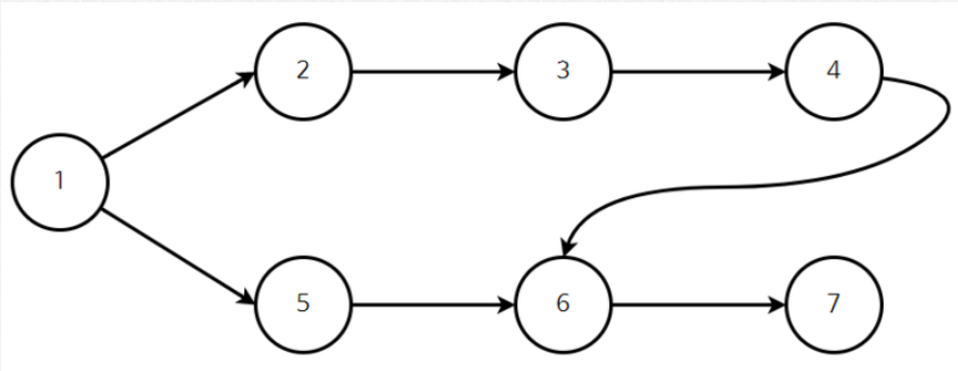 1->2->3->4->5->6->7도 가능할 것이고 1->2->3->5->4->6->7 등등 순서만 지키면 가능한 경우가 많을 것이다. 위상정렬의 특징은 여러개의 답이 존재할 수 있다는 것이다.