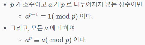 이말은 모듈러 p에 대해서 a의 역원이 a^p-2가 된다는 뜻이다.