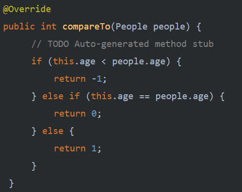 다음과 같이 선언해 준다면 People클래스를 age 변수에 따라 정렬 가능해진다. 방법은 똑같다.