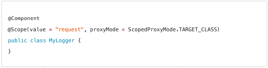 다음과 같이 프록시를 설정해주면 HTTP request의 여부와 상관없이 프록시 클래스를 빈에 미리 주입해 두고 필요할 때마다 사용 가능하게 해준다.(CGLIB이라는 라이브러리로 바이트코드를 조작해서 가짜 프록시 객체를 넣어놓는다)
