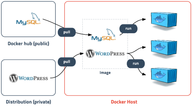 제일 처음 언급했던것 처럼 다양한 프로그램,실행환경을 추상화하여 동일한 인터페이스로 만들어 놓은것이 이미지이다. 필요한 이미지를 Docker hub나 개인이 dockerfile로 만든 이미지를 다운받고 컨테이너에 넣어 실행시키게 되면 하나의 프로세스가 실행되는 구조이다. 예를 들어 ubuntu이미지를 docker hub에서 다운받아 오면 이미지는 ubuntu를 컨테이너에서 구동하기 위한 모든 파일과 명령어가 들어가있어서 쉽게 ubuntu를 여러개를 사용할 수 있게 된다.