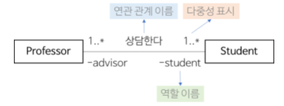역할 이름 은 실제 프로그램을 구현할 때 연관된 클래스의 객체들이 서로를 참조할 수 있는 속성의 이름으로 활용할 수 있다.