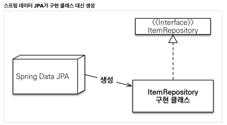 Spring Data JPA가 JpaRepository를 확장한 Repository Interface를 스캔해서 자체적으로 같은 이름의 프록시 구현 클래스를 만들어서 제공해준다. 우리는 인터페이스만 만들어두면 된다.