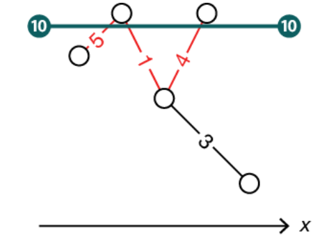 y좌표가 1->3으로 연결되고 통행량이 10, 3->5로 연결되고 통행량이 20이라고 가정해보자.
