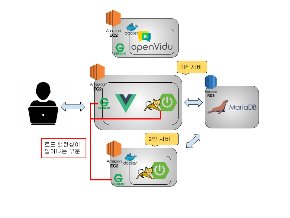 오픈비두서버는 화상회의 서버만 가지게 세분화 하였고 DB는 AWS RDS라서 모두의 엔드포인트가 같아서 같이 배포할