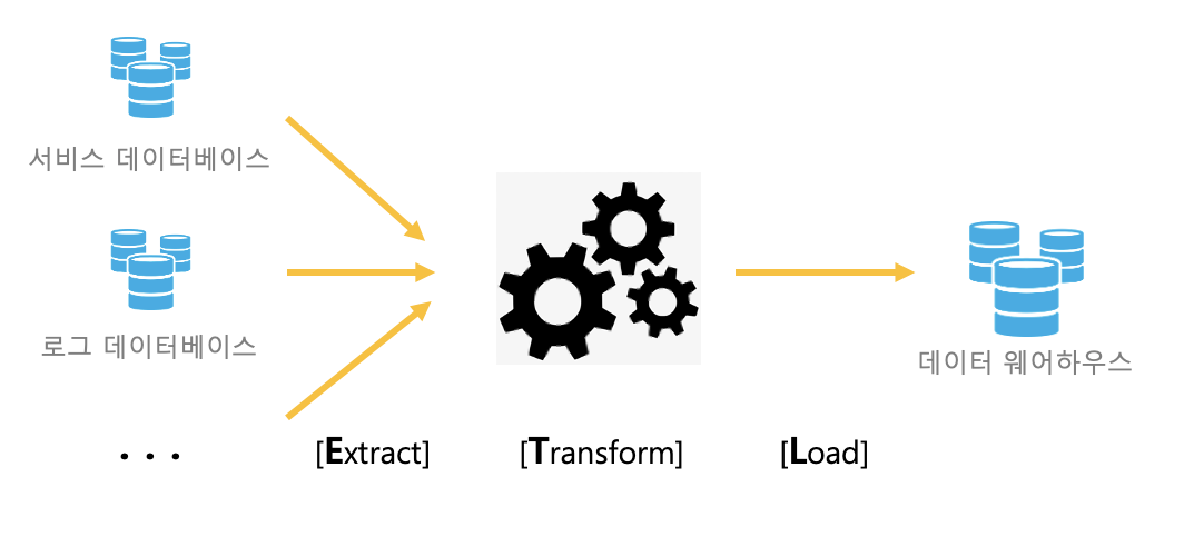 Extract, Transform, Load 약자로 데이터 소스들을 관리하기 쉽게 한 군데로 취합하는 프로세스.