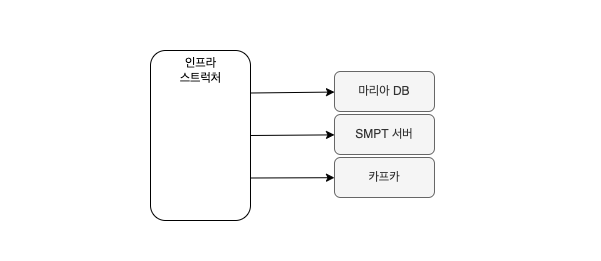 ex) DB에 보관된 데이터가 필요하다면 인프라 영역의 DB모듈을 사용하여 데이터를 읽음.