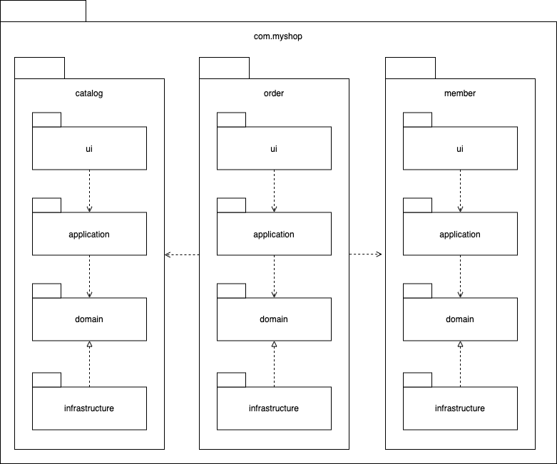 - 아키텍처의 각 영역은 별도 패키지에 위치합니다.